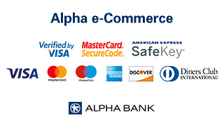 Κατά την διαδικασία αγοράς μέσα απο το site μας μπορείτε να πληρώσετε:- μέσω πιστωτικών, χρεωστικών και προπληρωμένων καρτών των Visa, Mastercard, Maestro, American Express, Diners.